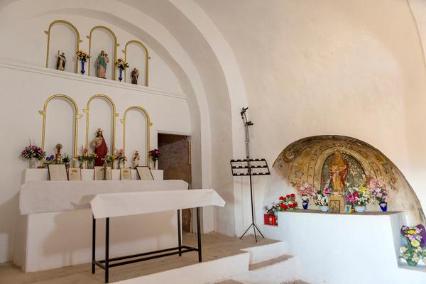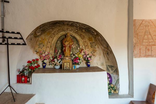En el muro sur hay un arcosolio abierto donde está depositada la imagen en piedra de Santa Marina con decoración de pinturas florales. En el otro extremo hay otras pinturas de un sol, una luna y estrellas.
